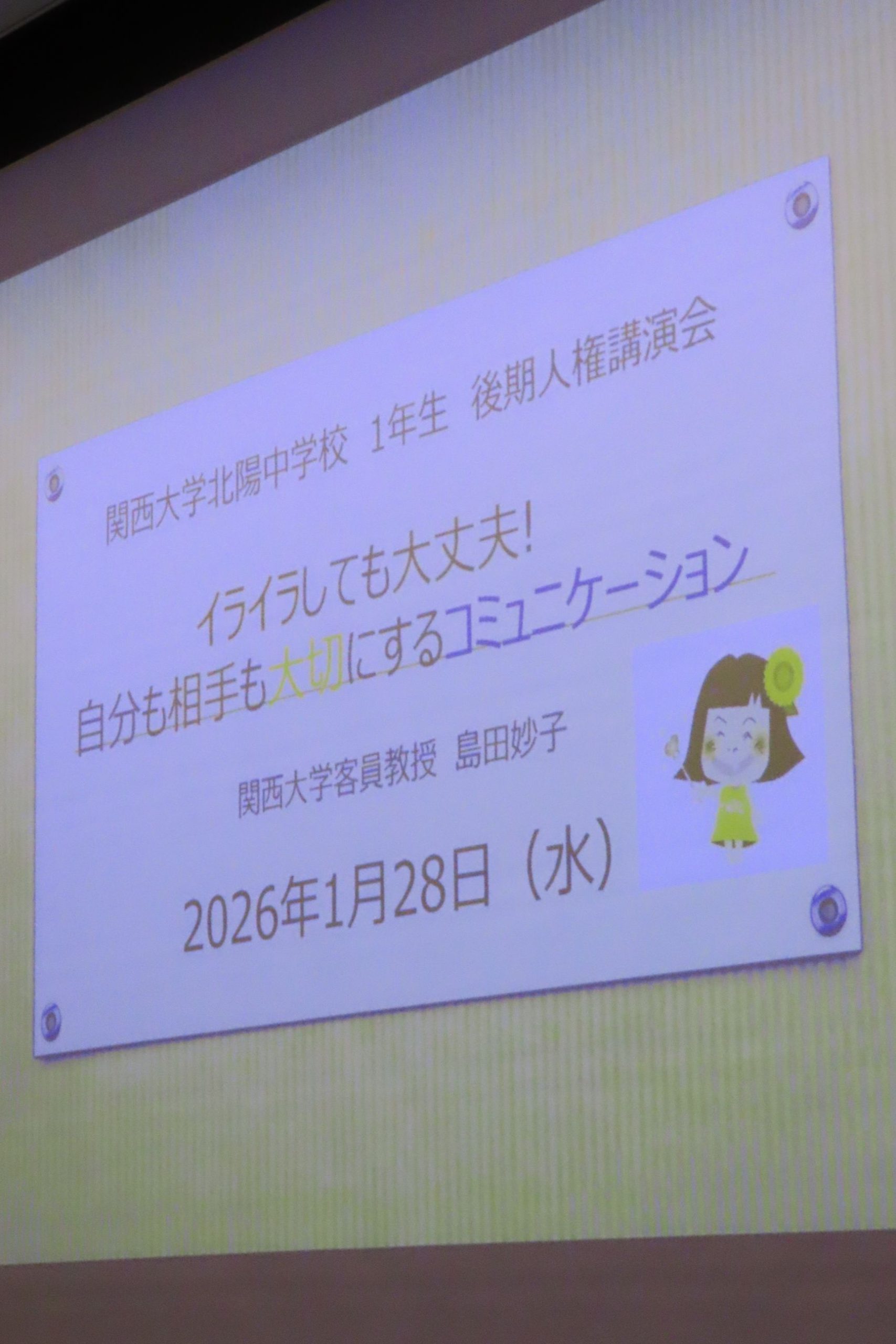 関西大学北陽中学校中学1年生 後期人権講演会